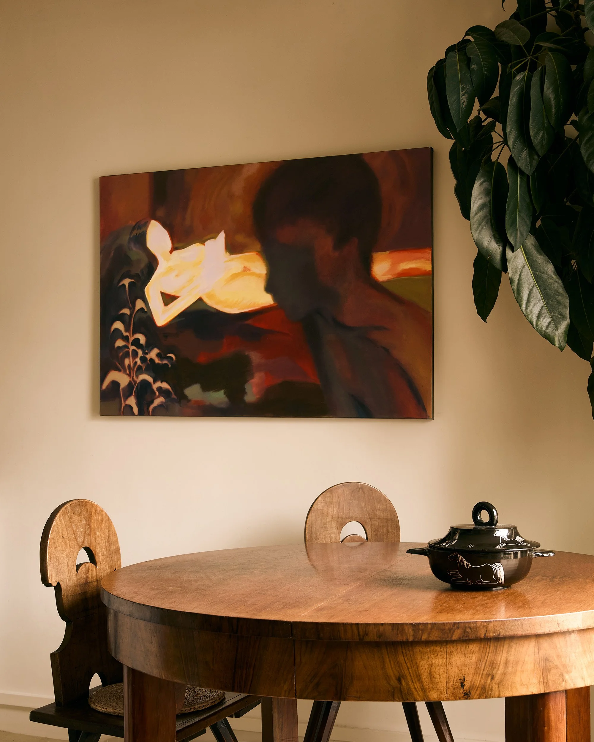 Dans vos peintures, on perçoit souvent le domaine de l'intime. Le spectateur semble presque voyeur d'une scène à laquelle il ne devrait pas avoir accès. D'où viennent ces scènes et pourquoi les peignez-vous?